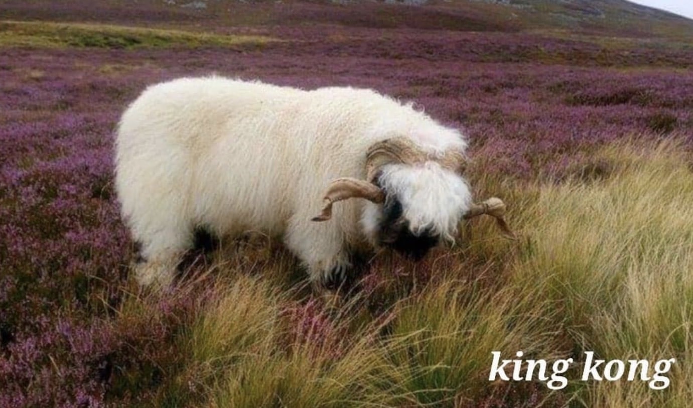 Picture is of Highland King Kong, the sire of Highland Ishmael. King Kong (Maximum Points) is a legend in the Valais Blacknose breed on several continents. Valais Iowa has a couple of sheep in our flock whose dams are sired by King Kong… both graded Maximum Points last year (Iowa Lucky Strike & Highland Luck Be A Lady). It makes me ask why we don’t have more King Kong in our pedigrees.