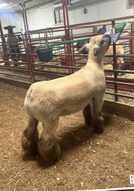 “My Town” came from one of the most popular flushes of 2023. His flush mates yielded “Ghetto” owned with Simpson Livestock, “Small Town” (Karr’s keeper FF buck), Breed Champion at the Ohio State Fair, and 3rd overall at the Colorado State Fair. He is crazy white featured, huge hipped and rump shape, stout and wide, while uniquely staying ripped up in his muscle expression. Combine all these traits and he still walks the pen like a high headed show sheep. My Town’s best attribute is his bloodline. His dam, Hazel, was the Reserve Market Ewe at the 2021 Iowa State Fair. Hazel’s flush mates were also the Grand Champion Commercial Ewe at the Iowa State Fair, along with an additional class winner at the same show. My Town’s grandma is the legend Fatty Patty. People that have used My Town are raving not just about his ability to throw great featured sheep, but that he is consistently siring big muscled, sound, cocky show sheep. For your 2024-2025 lamb crop, don’t’ wonder if you are using a sire that will throw enough muscle, bone, width, feature, and athleticism! KNOW that you are getting that with My Town.
