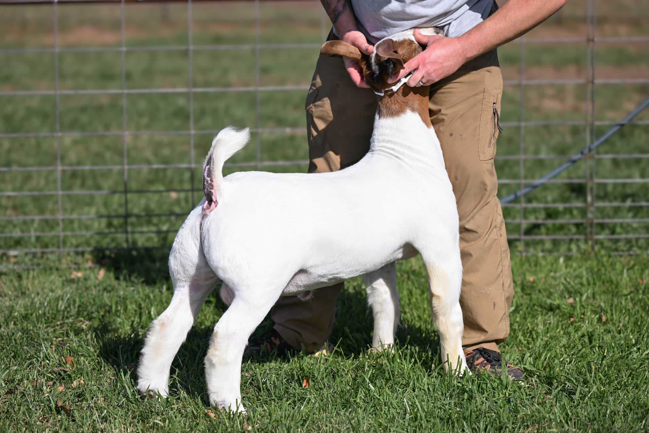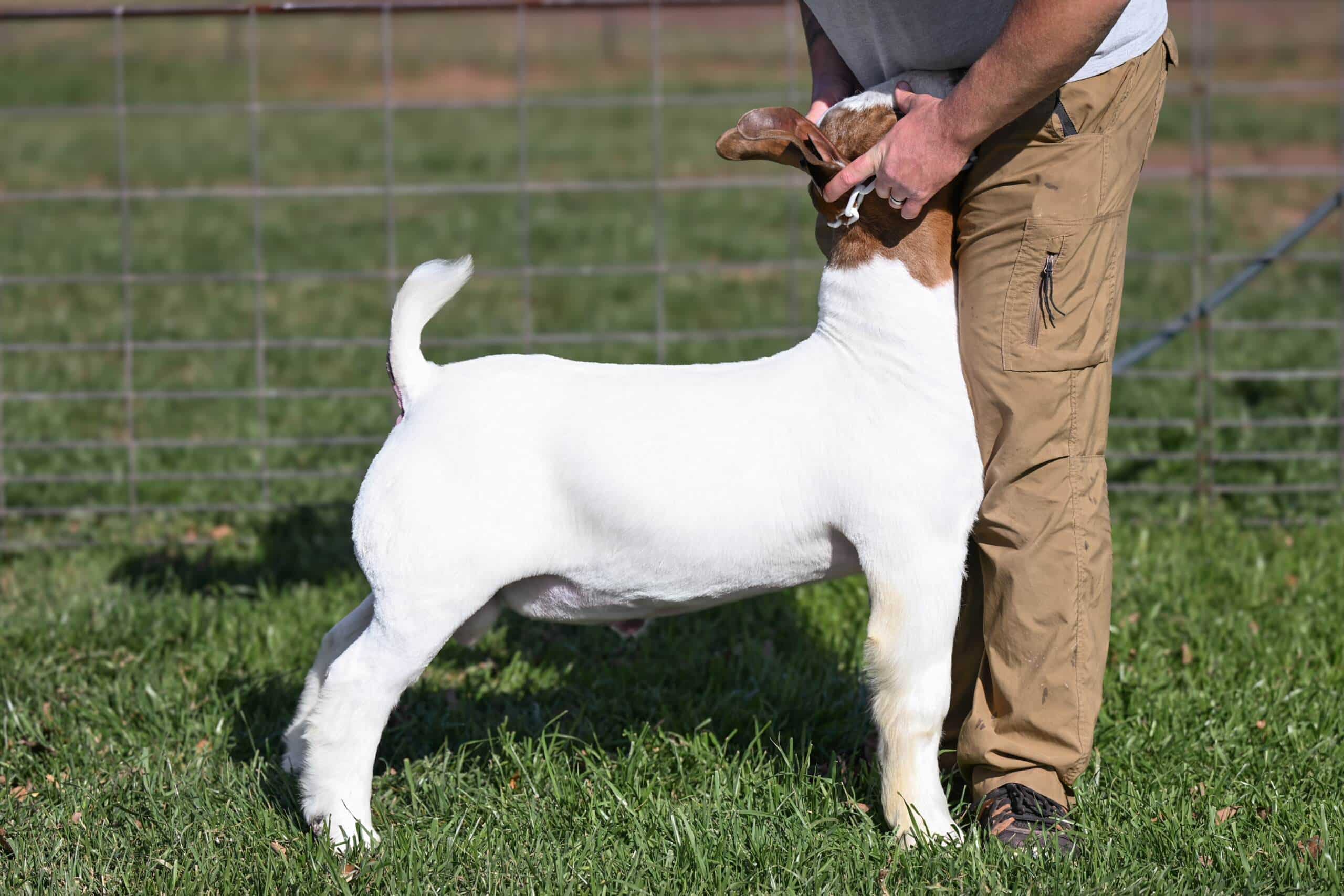 Queso is a true standout. He’s got a cool, eye-catching look that commands attention. Upfronted and bold through his chest and neck, he presents a sharp, confident profile. He’s structurally progressive; he blends modern genetics with a balanced, functional build. His muscle pattern is dense and hard-touching, showing off his power without sacrificing mobility. Combined with impressive shag, he adds the kind of hair that exudes extra ring presence. With his versatile design and genetic punch, this buck is built to elevate any doe in your herd. His first set of kids averaged $4,000 in our online September sale; his kids have consistently been shaggy, exotic, and good built livestock that will demand attention in every ring across the United States.