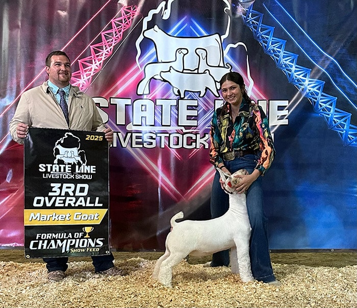 Ride The Ride has been marked as a keeper buck from the moment he was born. His outrageously stout noggin, bold cage, and extra feature have always stood out. We are extremely excited about how Ride has matured – not only does he offer easily the most lower skeletal clearance, upper hip, and stifle spread, but even more importantly to us this furry legged beast just looks like a buck! Again we only believe in keeping stud bucks out of special, elite appearing females that are bred royally and with power/consistency in the blood. Ride The Ride’s mom was our phenotypically favorite female from one of the winningest flushes at Fledderjohann’s in 2022. This flush included Reese Turman’s Grand Champion at the California State Fair and Maya McCoy’s Grand Champion at the Ohio State Fair. Count on Ride The Ride to consistently make better goats stamped wider, stouter, and furrier!
